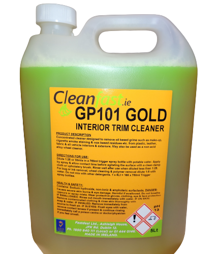 If you are in the market for a professional interior vehicle cleaner, you need to try Cleanfast GP101 Gold – Interior Trim Cleaner. This product is amazing. All Cleanfast cleaning products are manufactured locally in Ireland.