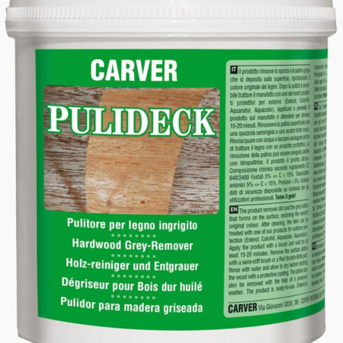 Carver Pulidek is a heavy duty, ready to use, water based exterior wood floor cleaner and wood decking restorer. The product’s main job is to remove old patina, decking discolorations and all types of grey or dull patches from decking, fencing, garden furniture, frames, etc. To be used undiluted with a brush or some kind of applicator. The product will require 15 minutes of direct contact with the area to provide the desirable results.