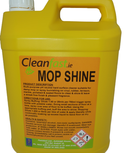 Cleanfast Mop Shine Floor Cleaner is a neutral floor cleaner suitable to use on all types of hard and soft floors. This floor cleaner can be used for daily maintenance of commercial and domestic floors. Safe to use on marble, terracotta, terrazzo, ceramic, amtico, porcelain, wood, marmoleum, lino,laminate, etc. A brilliant floor maintainer with a pleasant lemon fragrance.