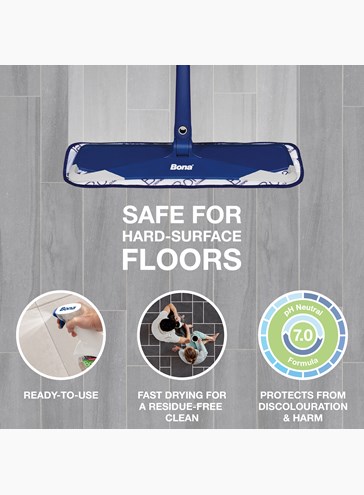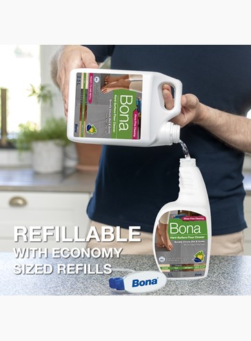 Bona Hard-Surface Floor Cleaner features a rinse-free, streak-free formula that effectively lifts dust, dirt, and grime from hard-surface floors