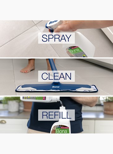 Vacuum the floor to remove all dust and dirt particles and spray the product all over the floor. Allow about 1 min to react with the dirt and then scrub the whole floor with a flat mopping system and a microfiber pad. The floor will dry to a streak free finish and all the dirt residue will attach to the cleaning pad. Wash your floor daily with the Bona Hard Surface Floor Cleaner 1L to protect and enhance the look of your floors.
