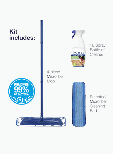 Streak Free Floor Cleaning Results With The Epic Bona Wood Floor Care Kit delivers professional quality cleaning with an easy to use flat mop system and telescopic handle for maximum control. The premium microfiber pad captures even the smallest particles while protecting delicate surfaces from scratches. Built from high quality anti rust materials, this versatile kit works with all Bona pads and includes a one litre Bona Wood Floor Cleaner for deep yet gentle results. Unlike traditional mop and bucket methods, it cleans and polishes in one step while helping extend the life and appearance of your floors.