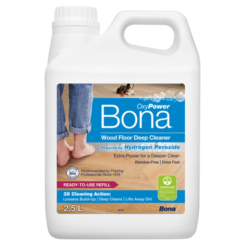 Bona OxyPower Wood Floor Deep Cleaner is the most powerful formula yet from Bona. With triple the cleaning action and boosted by hydrogen peroxide, it effortlessly tackles heavy dirt buildup, delivering a deep, thorough clean for wood floors.