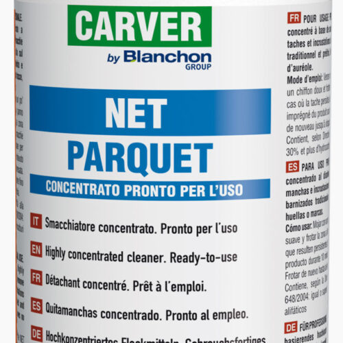 Carver Net Parquet Cleaner is a heavy duty wood floor cleaner, wood floor degreaser, wood stain remover and wood floor stripper. The product will remove all types of dirt from “varnished” surfaces without affecting the finish of the floor. The recommended dilution is 1 to 100 but for heavy duty floor stripping and degreasing, a lower dilution is required. Carver Net Parquet Cleaner works instantly and it does not require a lot of scrubbing. One of the most innovative and efficient formulas. The ideal product for removing polyurethane & epoxy residue.