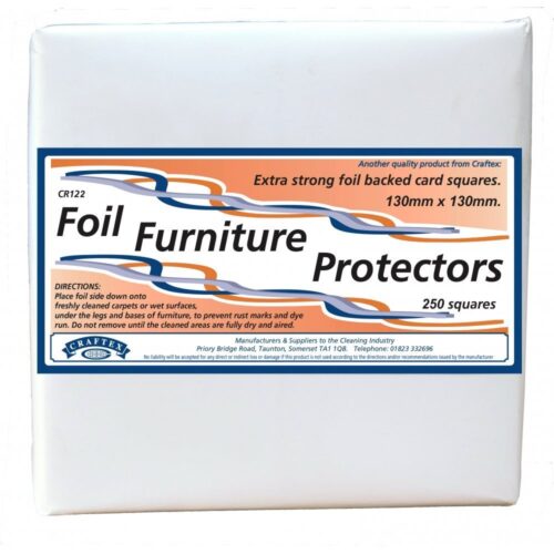 When cleaning your carpet, your main attention is on getting rid of the stains sticking to the fibres, soiling that is buried within the material, plus those pungent odours that are emanating from it. So you go about the task, using the appropriate procedure depending on your particular type of carpet. From spot treatment’s using high-efficacy cleaning solutions, to hot water extraction systems that give the carpet a thorough wash, the gunk is removed, leaving behind a freshly cleaned carpet. Now all you need to do is wait for it to dry, and restore the furniture while you’re at it. There’s just one problem: you could end up restaining the carpet. Why? From wooden furniture legs that have dyes which can seep into the carpet, to those with metal legs that cause rust stains, your newly cleaned carpet is at risk. This not only takes you back, making a mockery of the efforts you had put in place to ensure that the carpet is spotless, but the deeper the stains go the harder they will be to remove. What’s more, it’s likely that the furniture will be set atop the carpet and left in position for long, meaning that you may not even know that there are stains until the day you decide to move around the furniture, and be greeted by a glaring stain on your beautiful carpet. That’s not how you want things to turn out. You can prevent them from going down that route by using the Craftex Foil Protectors.