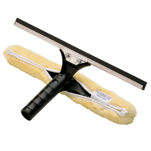 The system is light, ergonomic and very easy to use. One side is for washing the glass while the other side is suitable for drying the glass. Bear in mind that the squeegee is about 2 inches longer than the washer. Wet the glass with the microfiber sleeve, scrub well & then use the squeegee to remove all the waste. Nice and easy, no other tools required. Innovative, cost effective and manufactured from rust proof materials. Another quality window cleaning system from Ettore