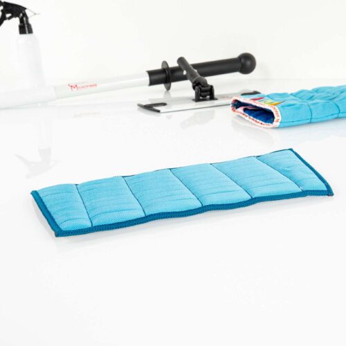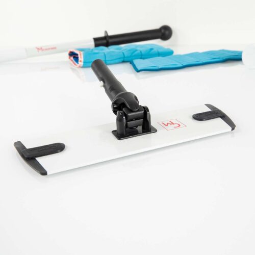 The spray bottle can be filled up with alcohol based glass/window cleaning products. We recommend Cleanfast Glass & Stainless Steel Cleaner. Attach the velcro pad to the velcro frame and connect the frame with the handle. You are ready for cleaning windows. Spray a fine mist of alcohol window cleaner all over the window and use the flat pad to scrub and extract the moisture. Spectacular results guaranteed. Use an EMR 80 / 30 cm pad to scrub the glass if there are heavy duty dirt deposits on the glass.