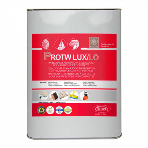 It is essential that the surface is 100% sealant free, clean and dry. It cannot penetrate pre-existing sealers or surfaces polished with polishing powders. It can be applied with an applicator, a roller, a brush or any other way you want. Allow the stone to absorb whatever it needs and about 10 minutes later remove the excess. It responds well to burnishing with a white pad. One coat of Faber PROTW Lux / LO is usually more than enough but two coats can be applied on highly absorbent stones. A bit of ventilation is required to speed up the drying process. The new Faber PROTW Lux / LO is suitable for residential and commercial use.