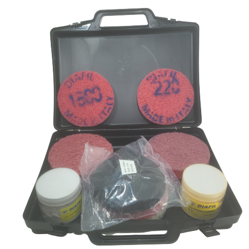 Diafil Worktop Polishing Kit is the ultimate solution for restoring natural stone to its original beauty without hiring expensive contractors. Each clearly marked pad ensures accurate progression through every grit, guaranteeing a smooth, professional finish. Designed for wet grinding and polishing, it maximises safety and effectiveness while preserving surface integrity. Dedicated powders for marble, travertine, and granite provide enhanced shine and long lasting brilliance. Ideal for start up polishing businesses or property owners seeking premium results, this high performance kit empowers users to repair, polish, and maintain stone surfaces with precision, efficiency, and impressive cost savings.