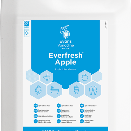 Bathrooms and washrooms generally accumulate alot of grime, bacteria and bad odours. Most professional bathroom cleaners and toilet descalers will remove the dirt but will leave behind a chemical odour. This is not the case with Evans Everfresh Apple. The product will remove all types of body fats, limescale & general bathroom dirt and will deodorise the whole room. A highly efficient, professional bathroom cleaning product and odour neutraliser in one product.